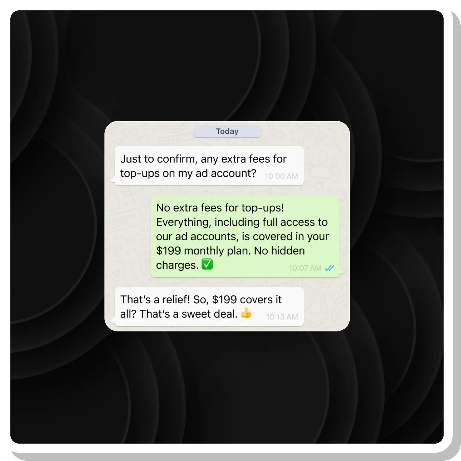 Ever had your card randomly declined while trying to fund your ad account? We get it, it’s frustrating. Our agency ad accounts come with easy payment solutions so your ads keep running smoothly.